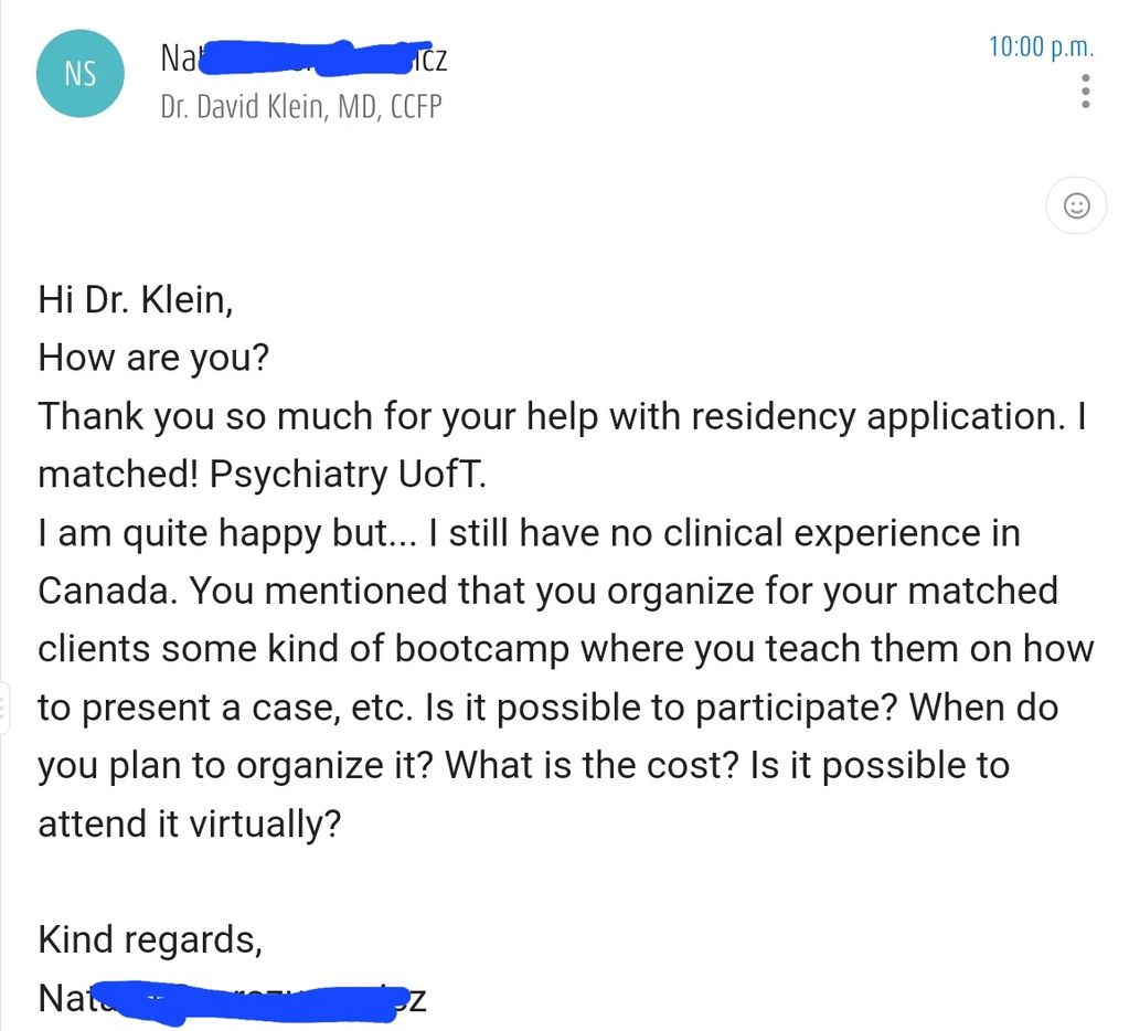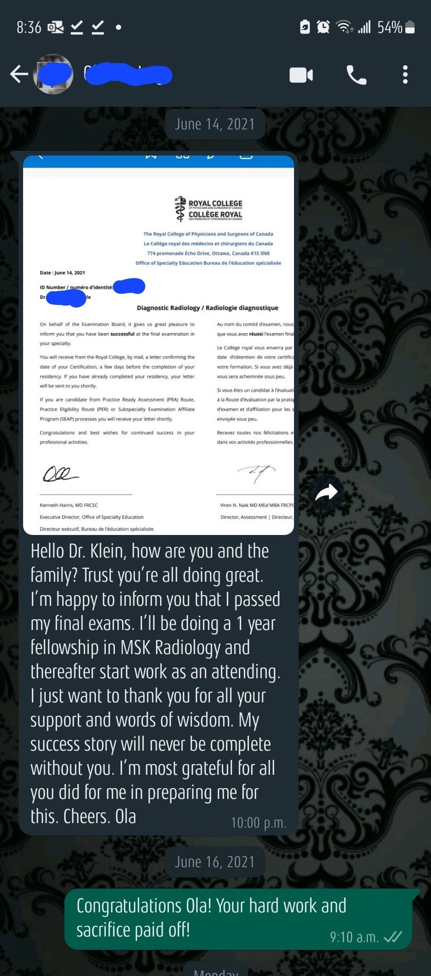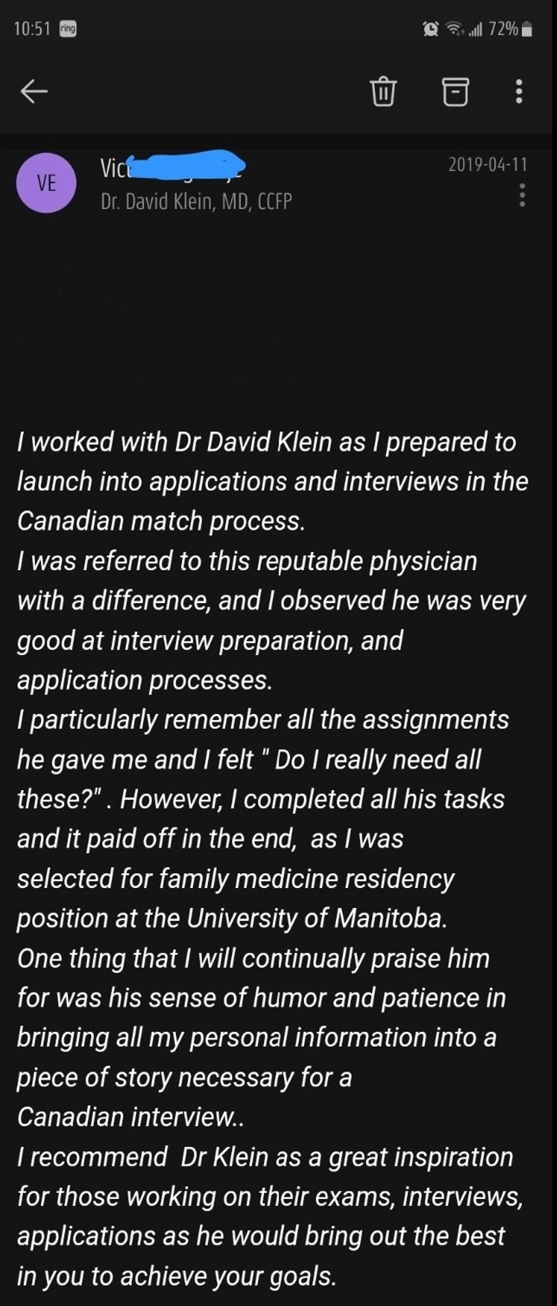 We first met Ola in 2015. She had recently immigrated to Canada from Nigeria (where she had been a practicing radiologist). She had given up on getting into a radiology residency and contacted us for assistance applying to family medicine. After 6 months of hard work, our consultants helped her realize her original dream.